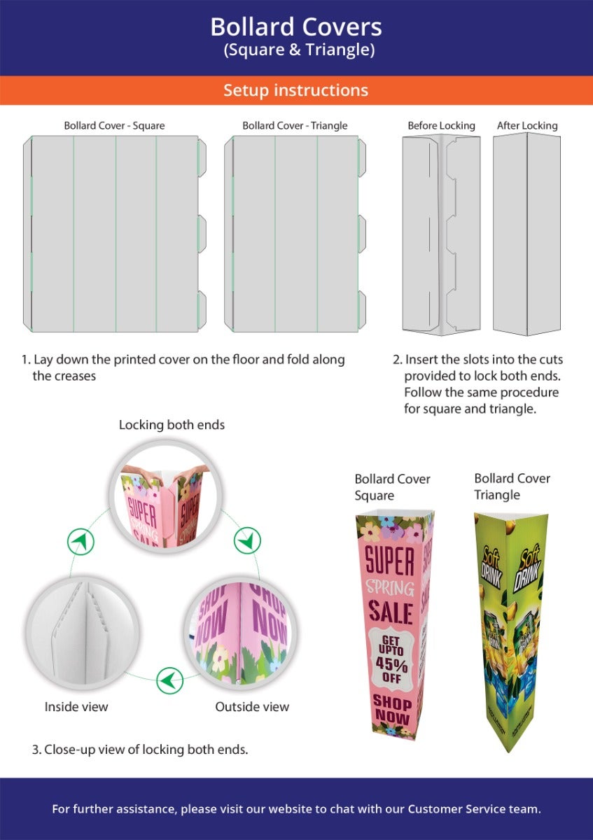 Safeguard and beautify your bollards with bollard covers crafted for durability and elegance. These decorative bollard covers are made from high-quality corflute material with wear resistance. The square design and built-in self-locking system provide stability, making these bollard post covers a reliable and cost-effective choice for branding and protection.