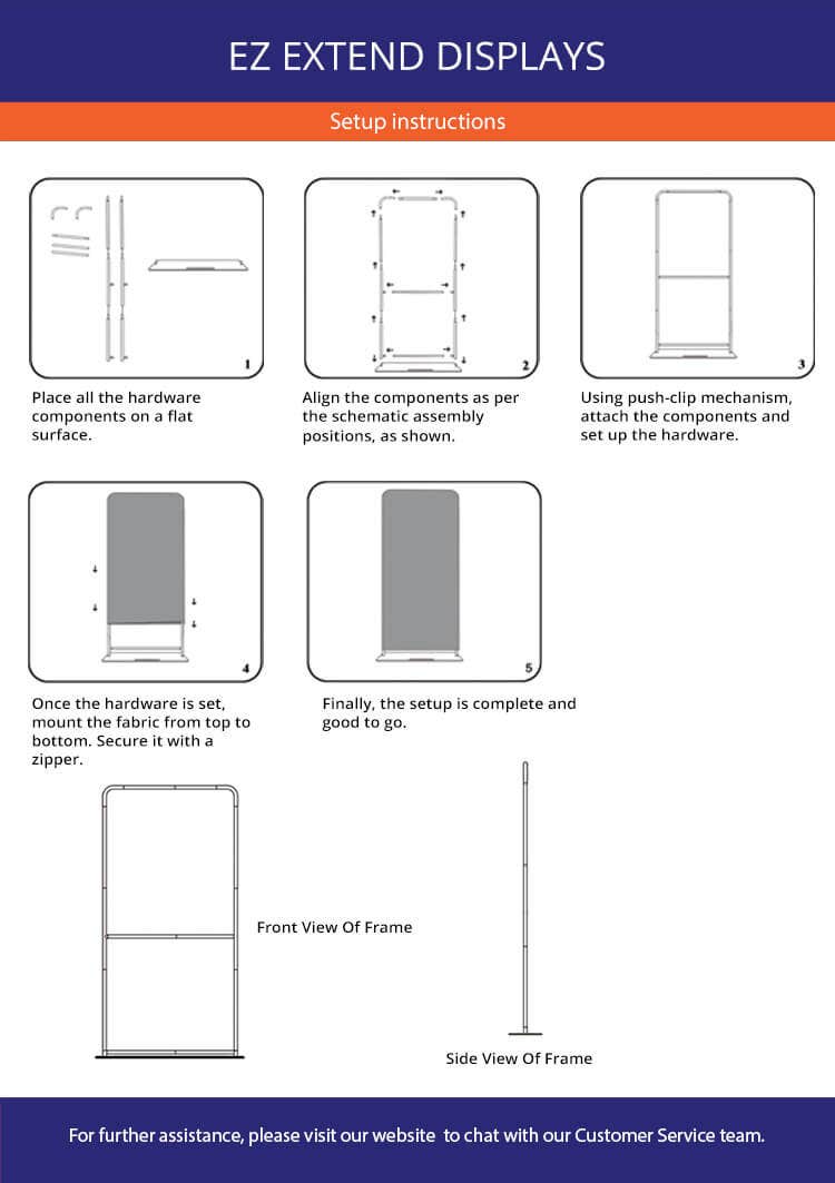 Our EZ extend displays are built with high-quality aluminium frames and polyester fabric, offering excellent durability. The corrosion-resistant materials make these customised banners suitable for both indoor and outdoor use. With full-colour, 1440 DPI dye-sublimation printing on 230 GSM fabric, these custom fabric banners offer vibrant and sharp visuals that stand out in any setting.
