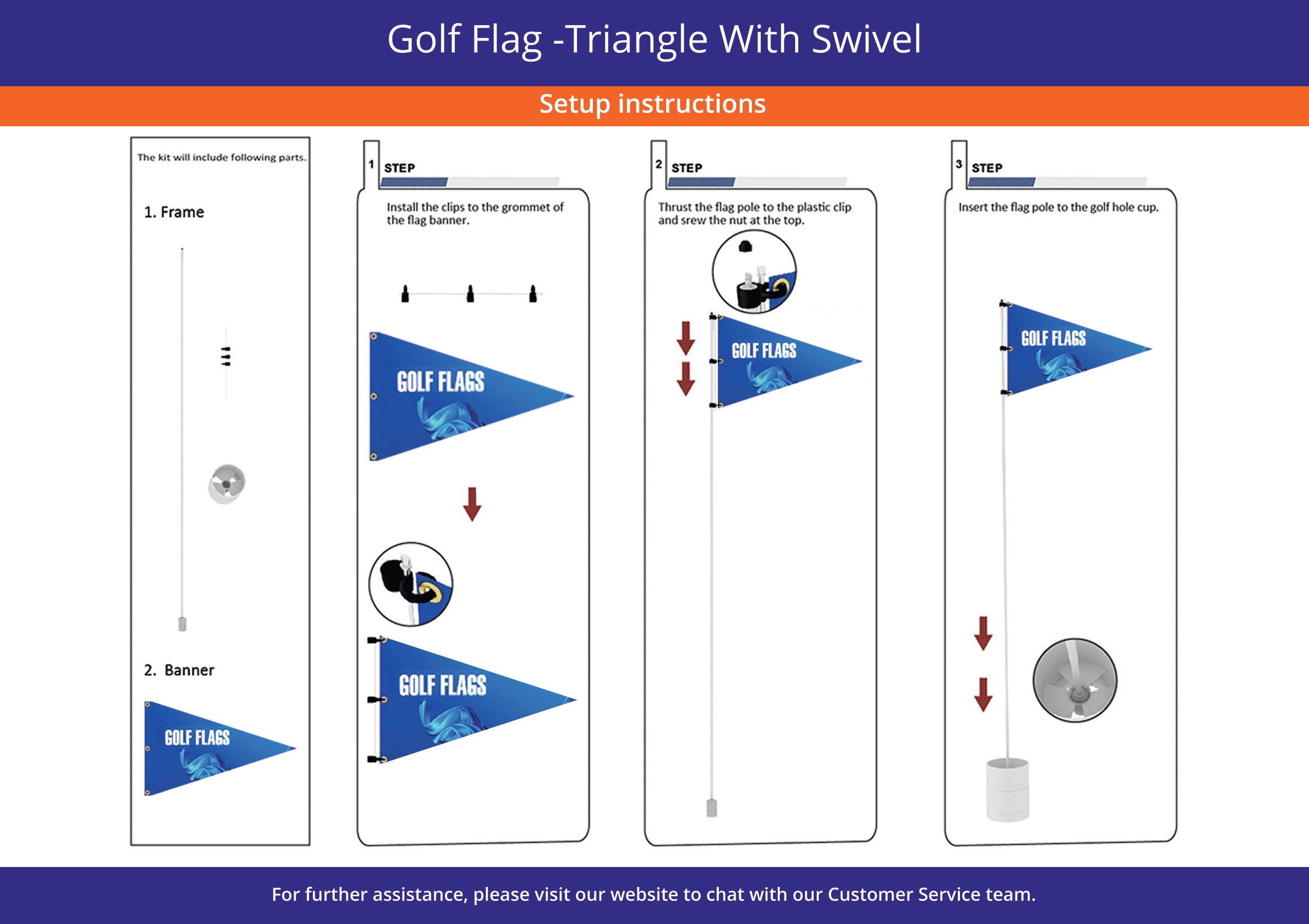 Our golf flags offer several hanging options. Opt for the basic golf flag with a swivel, add a fibre pole for extra stability, or choose a flag with a swivel and cup for a secure mount. For the most comprehensive setup, consider the full assembly.