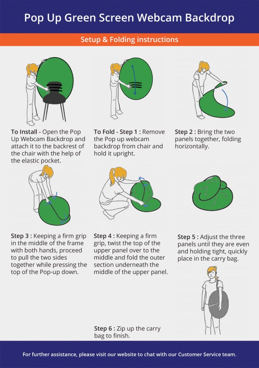 Our webcam backdrop is crafted from 240 GSM elastic polyester, offering a premium and affordable solution for your background needs. This durable material effectively blocks out light, preventing any bleed-through during your sessions. The dye sublimation printing technique ensures the colour remains vibrant and long-lasting, even with extended use. The pop-up green screen comes in a green front and a white back. The integrated spring metal frame keeps the green fabric screen stable and wrinkle-free, making your editing process smoother.
